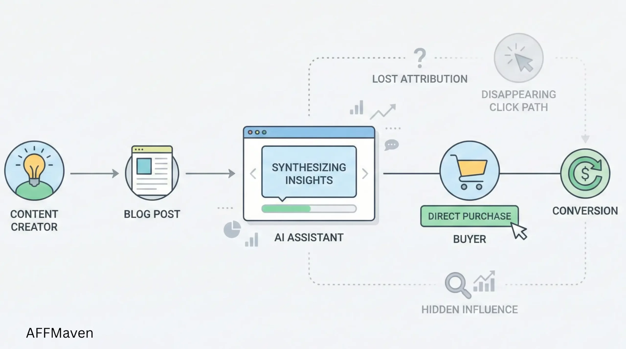 الإحصائيات الأخيرة تظهر ذلك معدلات تحويل الإحالات من ChatGPT أسوأ بنسبة 86% من التقليدية affiliate الروابط. لماذا؟ لأن الناس يستخدمونها. شات جي بي تي لأغراض البحث، وليس للنقر. يحصلون على المعلومات ويغادرون. إذا كنت لا تزال تعتمد كلياً على إسناد النقرة الأخيرة، فأنت تعمل مجاناً. أنت تُغذي خوارزمية الذكاء الاصطناعي بمحتواك الذي كسبته بشق الأنفس، وهي في المقابل تُجوعك.